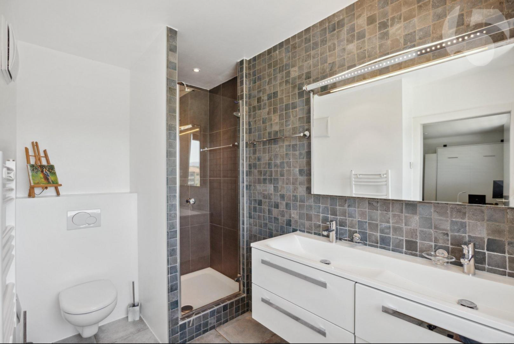 De style contemporain, cet attique possède une belle pièce de vie de 58 m2 avec cheminée et cuisine ouverte. Cet espace est très lumineux grâce à ses grandes baies vitrées au salon et à la cuisine. Le parquet véritable lui donne un côté chaleureux et la teinte anthracite de la cuisine lui apporte une touche de modernité. L'îlot central est sur des roulettes afin de moduler votre cuisine comme vous le souhaitez.