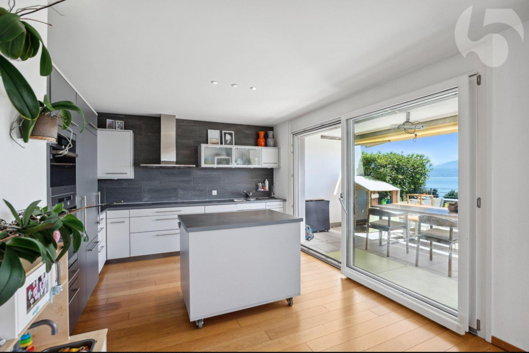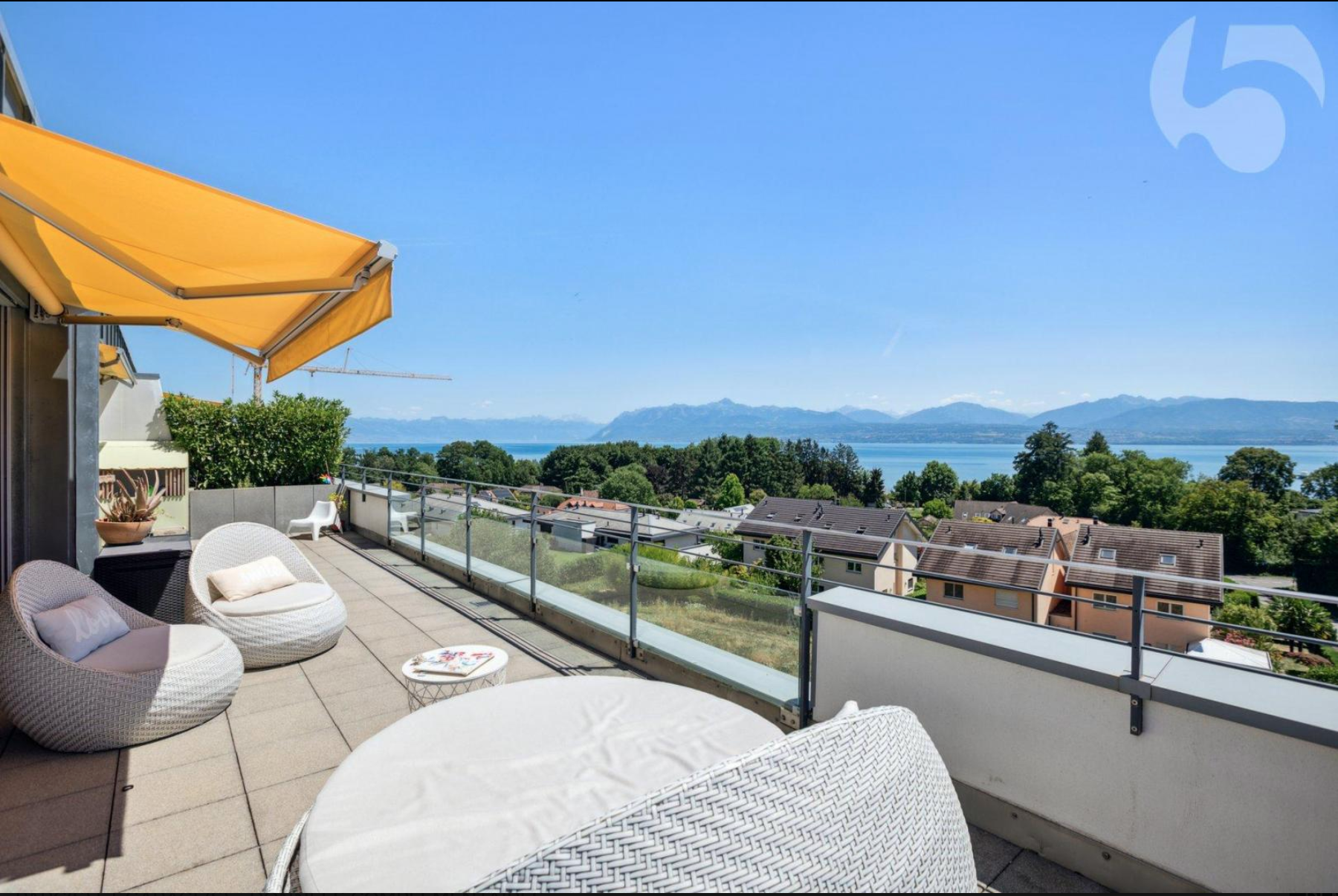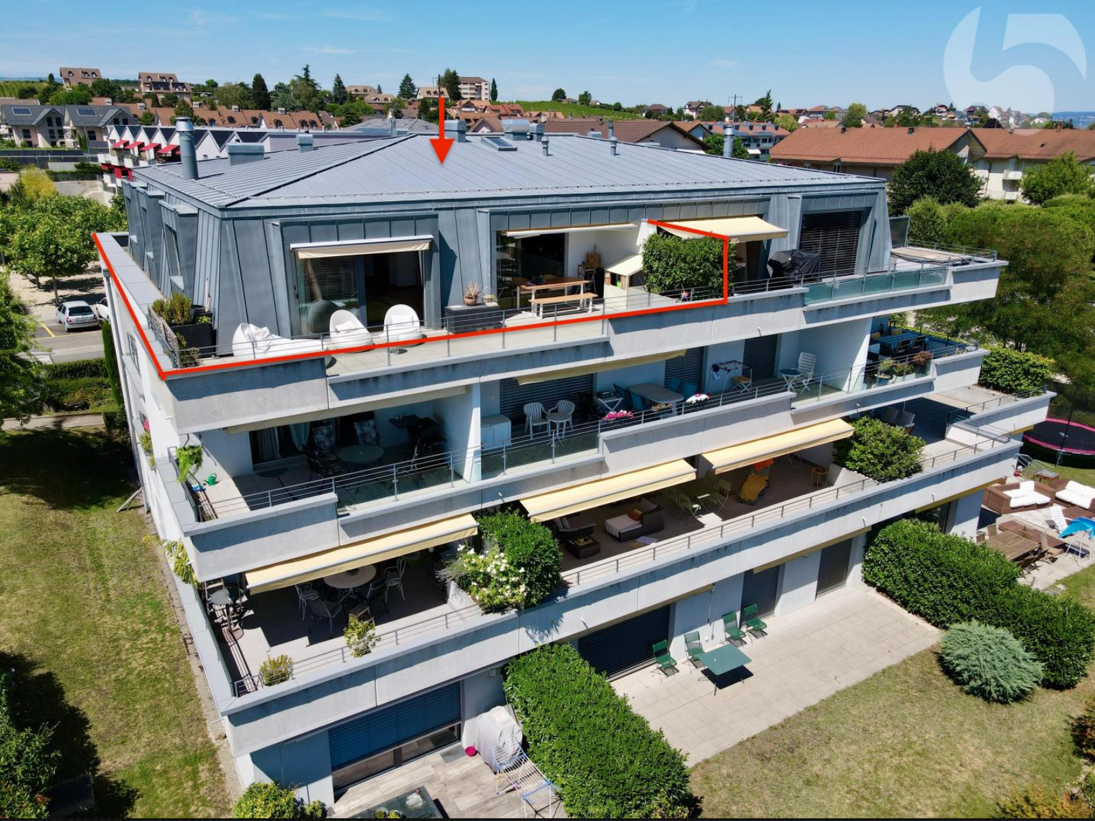 Magnifique attique de 4,5 pièces avec une terrasse orientée plein sud de 43 m2. Sis sur une parcelle de 1563 m2, cet immeuble de 11 appartements a été construit en 2006 sur 4 niveaux. Les extérieurs et les communs sont très bien entretenus.